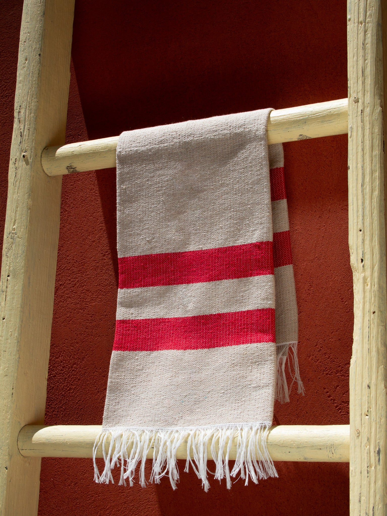 Classic Stripe Cotton Hand Towel - Corazon Red + Natural